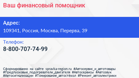 Ваш финансовый помощник по адресу 109341, Россия, Москва, Перерва, 39 в дальнейшем Организация, размещена в следующих категориях: