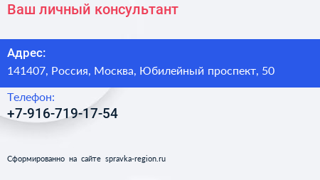Ваш личный консультант по адресу 141407, Россия, Москва, Юбилейный проспект, 50 в дальнейшем Организация, размещена в следующих категориях: