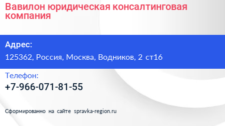 Вавилон, юридическая консалтинговая компания по адресу 125362, Россия, Москва, Водников, 2 ст16 в дальнейшем Организация, размещена в следующих категориях: