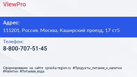 ViewPro по адресу 115201, Россия, Москва, Каширский проезд, 17 ст5 в дальнейшем Организация, размещена в следующих категориях: