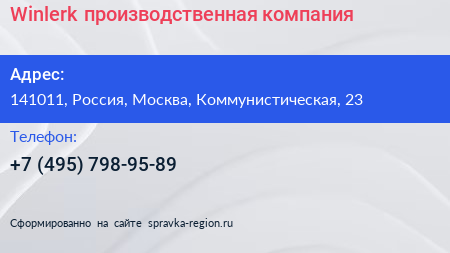 Winlerk, производственная компания по адресу 141011, Россия, Москва, Коммунистическая, 23 в дальнейшем Организация, размещена в следующих категориях: