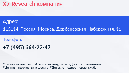 X7 Research, компания по адресу 115114, Россия, Москва, Дербеневская Набережная, 11 в дальнейшем Организация, размещена в следующих категориях:
