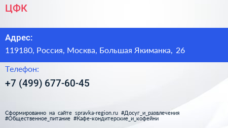 ЦФК по адресу 119180, Россия, Москва, Большая Якиманка, 26 в дальнейшем Организация, размещена в следующих категориях: