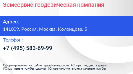 Земсервис, геодезическая компания по адресу 141009, Россия, Москва, Колонцова, 5 в дальнейшем Организация, размещена в следующих категориях: