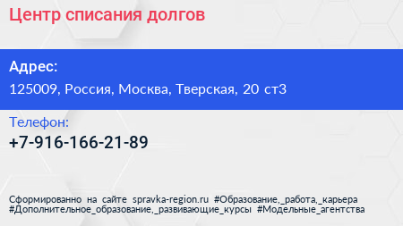 Центр списания долгов по адресу 125009, Россия, Москва, Тверская, 20 ст3 в дальнейшем Организация, размещена в следующих категориях: