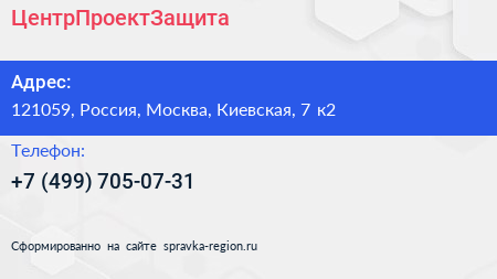 ЦентрПроектЗащита по адресу 121059, Россия, Москва, Киевская, 7 к2 в дальнейшем Организация, размещена в следующих категориях:
