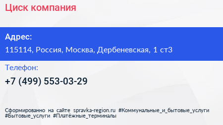 Для связи с организацией воспользуйтесь номером телефона: +7 (499) 553-03-29. Пн: c 09:00-18:00, Вт: c 09:00-18:00, Ср: c 09:00-18:00, Чт: c 09:00-18:00, Пт: c 09:00-18:00, Сб: выходной, Вс: выходной, вы можете обратиться в эту организацию.