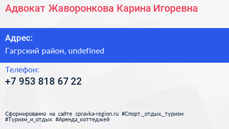 Адвокат Жаворонкова Карина Игоревна по адресу Гагрский район, undefined в дальнейшем Организация, размещена в следующих категориях: