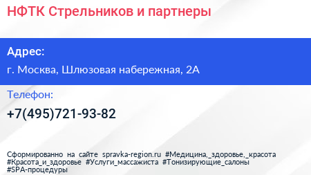 НФТК Стрельников и партнеры по адресу г. Москва, Шлюзовая набережная, 2А в дальнейшем Организация, размещена в следующих категориях: