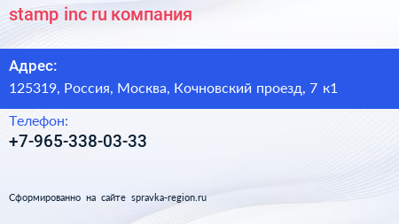 stamp-inc.ru, компания по адресу 125319, Россия, Москва, Кочновский проезд, 7 к1 в дальнейшем Организация, размещена в следующих категориях: