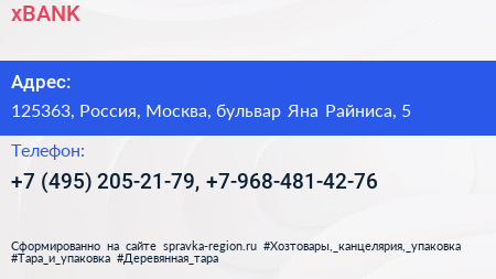 xBANK по адресу 125363, Россия, Москва, бульвар Яна Райниса, 5 в дальнейшем Организация, размещена в следующих категориях: