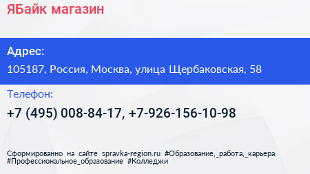 ЯБайк, магазин по адресу 105187, Россия, Москва, улица Щербаковская, 58 в дальнейшем Организация, размещена в следующих категориях: