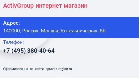 ActivGroup, интернет-магазин по адресу 140000, Россия, Москва, Котельническая, 8Б в дальнейшем Организация, размещена в следующих категориях: