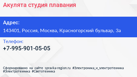 Акулята, студия плавания по адресу 143401, Россия, Москва, Красногорский бульвар, 3а в дальнейшем Организация, размещена в следующих категориях: