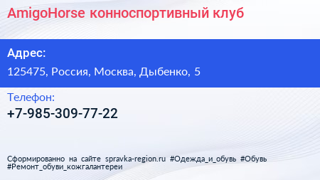 AmigoHorse, конноспортивный клуб по адресу 125475, Россия, Москва, Дыбенко, 5 в дальнейшем Организация, размещена в следующих категориях: