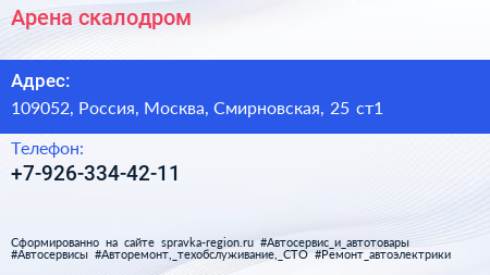 Арена, скалодром по адресу 109052, Россия, Москва, Смирновская, 25 ст1 в дальнейшем Организация, размещена в следующих категориях: