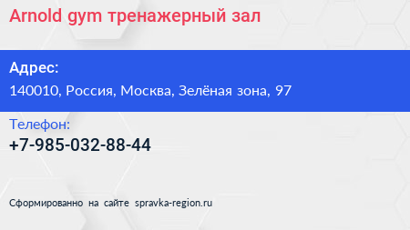 Arnold gym, тренажерный зал по адресу 140010, Россия, Москва, Зелёная зона, 97 в дальнейшем Организация, размещена в следующих категориях: