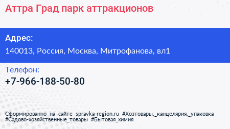 Аттра-Град, парк аттракционов по адресу 140013, Россия, Москва, Митрофанова, вл1 в дальнейшем Организация, размещена в следующих категориях:
