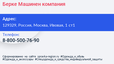 Берке Машинен, компания по адресу 129329, Россия, Москва, Ивовая, 1 ст1 в дальнейшем Организация, размещена в следующих категориях: