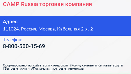 CAMP Russia, торговая компания по адресу 111024, Россия, Москва, Кабельная 2-я, 2 в дальнейшем Организация, размещена в следующих категориях: