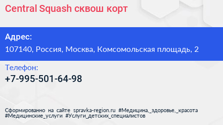 Central Squash, сквош-корт по адресу 107140, Россия, Москва, Комсомольская площадь, 2 в дальнейшем Организация, размещена в следующих категориях:
