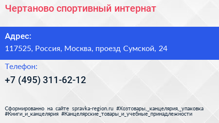Чертаново, спортивный интернат по адресу 117525, Россия, Москва, проезд Сумской, 24 в дальнейшем Организация, размещена в следующих категориях: