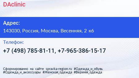 DAclinic по адресу 143030, Россия, Москва, Весенняя, 2 к6 в дальнейшем Организация, размещена в следующих категориях: