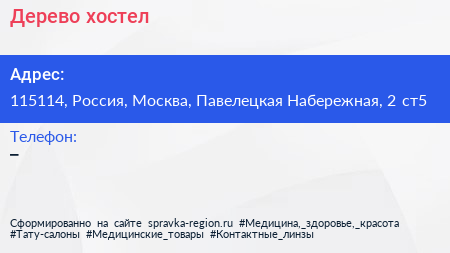 Дерево, хостел по адресу 115114, Россия, Москва, Павелецкая Набережная, 2 ст5 в дальнейшем Организация, размещена в следующих категориях: