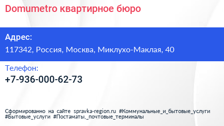 Domumetro, квартирное бюро по адресу 117342, Россия, Москва, Миклухо-Маклая, 40 в дальнейшем Организация, размещена в следующих категориях: