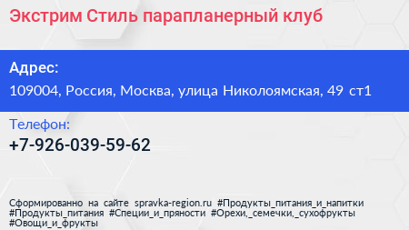 Экстрим-Стиль, парапланерный клуб по адресу 109004, Россия, Москва, улица Николоямская, 49 ст1 в дальнейшем Организация, размещена в следующих категориях: