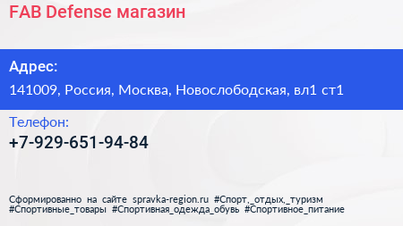 FAB Defense, магазин по адресу 141009, Россия, Москва, Новослободская, вл1 ст1 в дальнейшем Организация, размещена в следующих категориях: