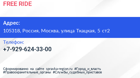 FREE-RIDE по адресу 105318, Россия, Москва, улица Ткацкая, 5 ст2 в дальнейшем Организация, размещена в следующих категориях: