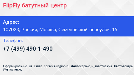 FlipFly, батутный центр по адресу 107023, Россия, Москва, Семёновский переулок, 15 в дальнейшем Организация, размещена в следующих категориях: