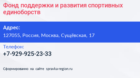 Фонд поддержки и развития спортивных единоборств по адресу 127055, Россия, Москва, Сущёвская, 17 в дальнейшем Организация, размещена в следующих категориях: