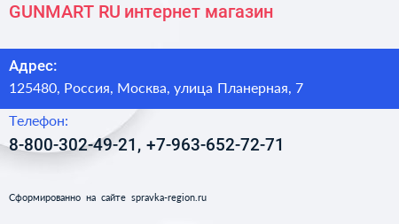 GUNMART.RU, интернет-магазин по адресу 125480, Россия, Москва, улица Планерная, 7 в дальнейшем Организация, размещена в следующих категориях: