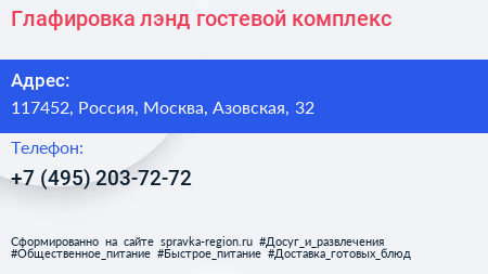 Глафировка лэнд, гостевой комплекс по адресу 117452, Россия, Москва, Азовская, 32 в дальнейшем Организация, размещена в следующих категориях: