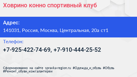 Ховрино, конно-спортивный клуб по адресу 141031, Россия, Москва, Центральная, 20а ст1 в дальнейшем Организация, размещена в следующих категориях: