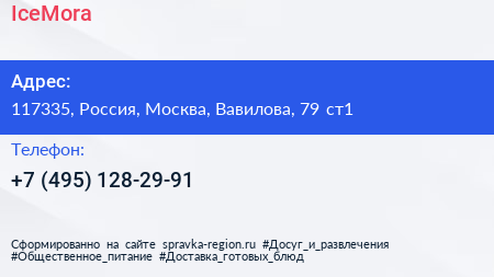 IceMora по адресу 117335, Россия, Москва, Вавилова, 79 ст1 в дальнейшем Организация, размещена в следующих категориях: