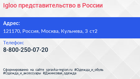 Igloo, представительство в России по адресу 121170, Россия, Москва, Кульнева, 3 ст2 в дальнейшем Организация, размещена в следующих категориях: