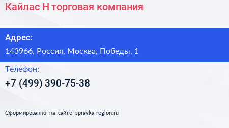 Кайлас-Н, торговая компания по адресу 143966, Россия, Москва, Победы, 1 в дальнейшем Организация, размещена в следующих категориях: