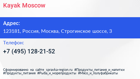 Kayak Moscow по адресу 123181, Россия, Москва, Строгинское шоссе, 3 в дальнейшем Организация, размещена в следующих категориях: