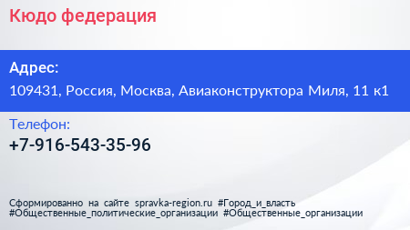 Кюдо, федерация по адресу 109431, Россия, Москва, Авиаконструктора Миля, 11 к1 в дальнейшем Организация, размещена в следующих категориях: