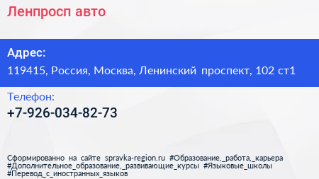 Ленпросп-авто по адресу 119415, Россия, Москва, Ленинский проспект, 102 ст1 в дальнейшем Организация, размещена в следующих категориях: