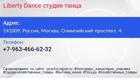 Liberty Dance, студия танца по адресу 141009, Россия, Москва, Олимпийский проспект, 4 в дальнейшем Организация, размещена в следующих категориях: