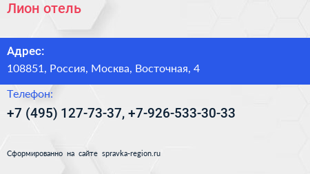 Лион, отель по адресу 108851, Россия, Москва, Восточная, 4 в дальнейшем Организация, размещена в следующих категориях: