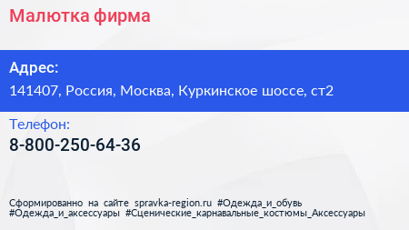 Малютка, фирма по адресу 141407, Россия, Москва, Куркинское шоссе, ст2 в дальнейшем Организация, размещена в следующих категориях: