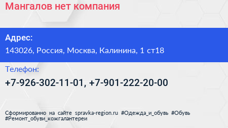 Мангалов.нет, компания по адресу 143026, Россия, Москва, Калинина, 1 ст18 в дальнейшем Организация, размещена в следующих категориях: