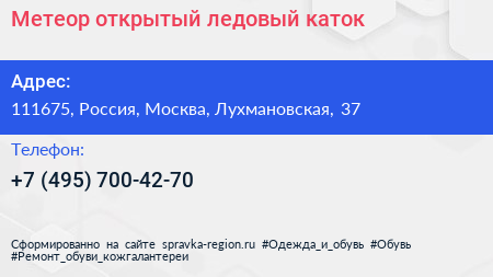 Метеор, открытый ледовый каток по адресу 111675, Россия, Москва, Лухмановская, 37 в дальнейшем Организация, размещена в следующих категориях: