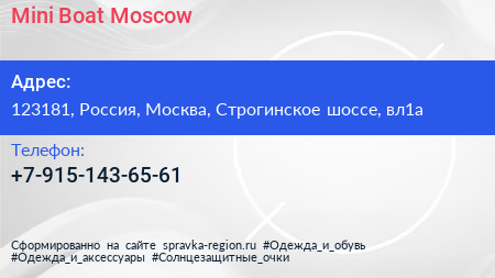 Mini Boat Moscow по адресу 123181, Россия, Москва, Строгинское шоссе, вл1а в дальнейшем Организация, размещена в следующих категориях: