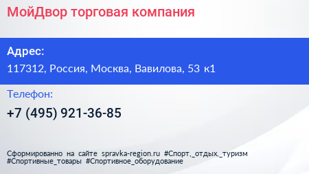 МойДвор, торговая компания по адресу 117312, Россия, Москва, Вавилова, 53 к1 в дальнейшем Организация, размещена в следующих категориях: